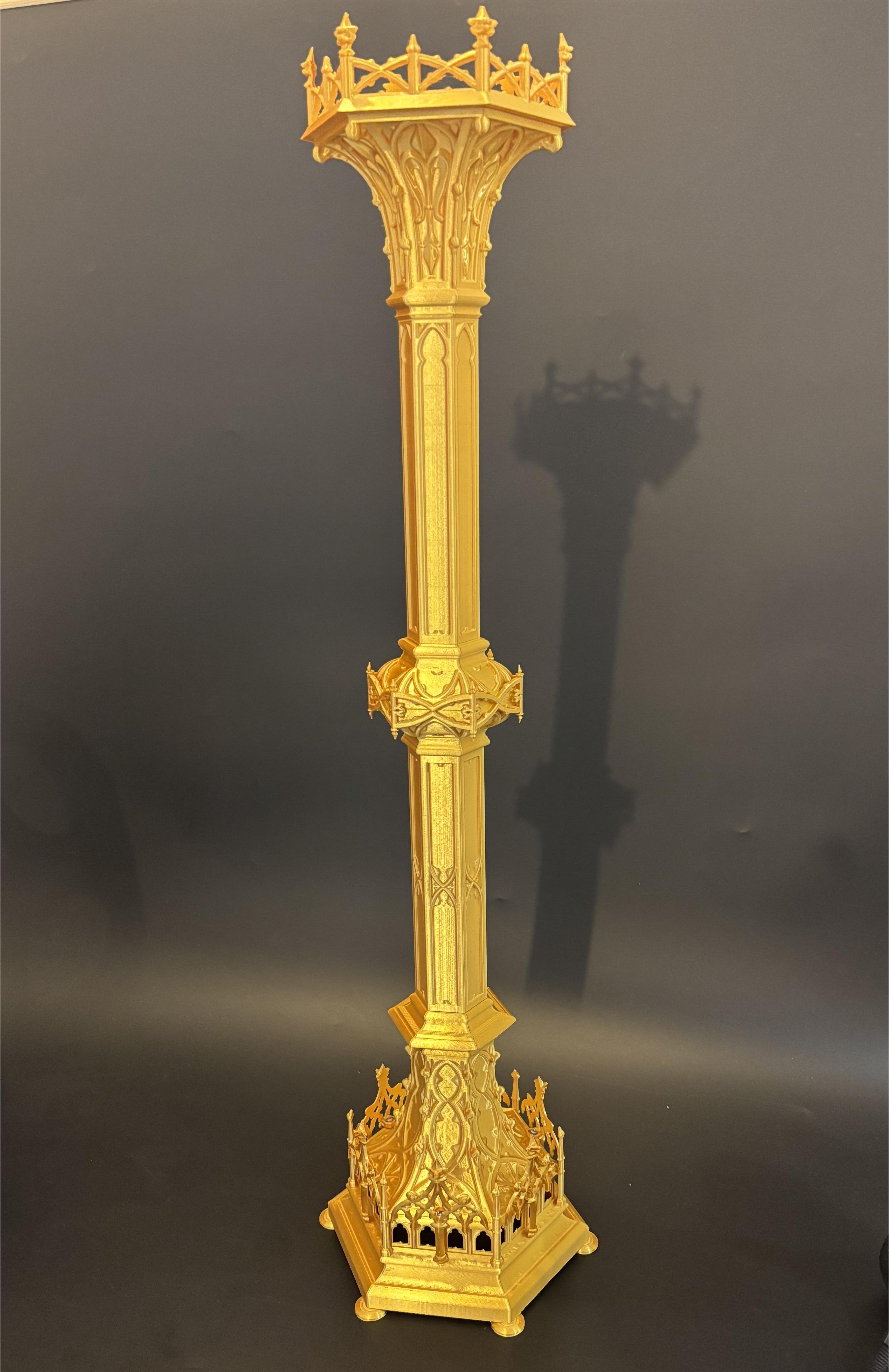 Перед нами стояла задача — создать точную копию церковного светильника. Необходимо было отсканировать каждый элемент по отдельности, а затем собрать их в единое изделие. Сканирование выполнили с помощью Revopoint. Печать — слоем 0,2 мм, материал — PLA Silk.